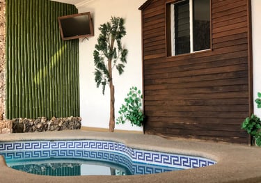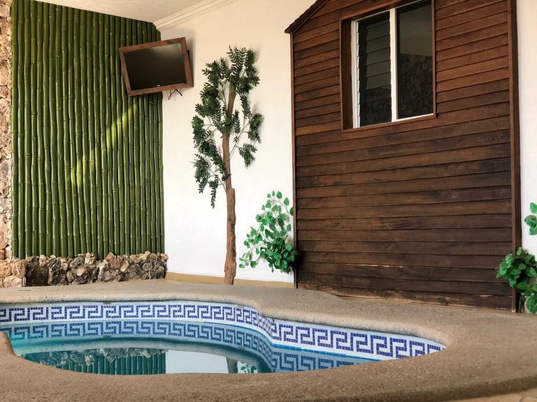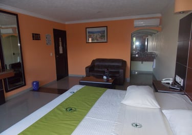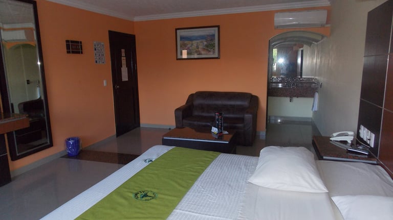 Todas nuestras habitaciones cuentan con cama King Size, clima, tv por cable y el sillón del amor. Además de shampoo, jabón, toallas, secadoras de cabello y gorras para baño, de calidad, para que pases una estancia agradable.