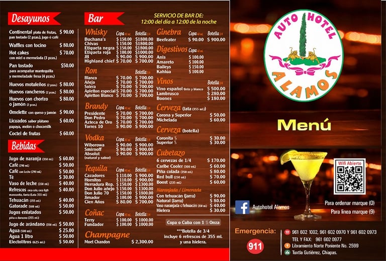 En el restaurante bar del Auto Hotel Álamos, te invitamos a disfrutar de una experiencia culinaria única, donde la variedad de platillos y bebidas deleitará tu paladar. Desde los tradicionales chilaquiles, perfectos para un desayuno sustancioso, hasta una amplia gama de snacks ideales para compartir, cada bocado es una explosión de sabor. Complementa tu comida con una refrescante cerveza o un exquisito cóctel, preparado por nuestros expertos. Ya sea que busques un ambiente acogedor para relajarte después de un largo viaje o simplemente desees disfrutar de una buena comida, nuestro menú está diseñado para satisfacer todos los gustos y hacer de tu visita un momento memorable. Ven y descubre por qué somos el destino preferido para quienes buscan deleitarse con sabores exquisitos en cada bocado y sorbo. ¡Te esperamos!